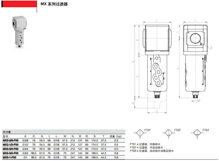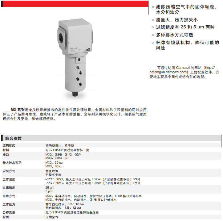 MX2-3/8-F00,MX2-1/2-F03,MX3-1/2-F05,MX3-3/8-F08,camozzi过滤器