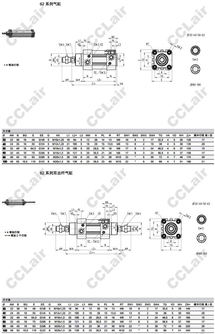62M1P032A0100,62M2P050A0200,62M3P063A0250,62M4P080A0300,62M5P0125A0400,61N6P0100A0320,camozzi气缸