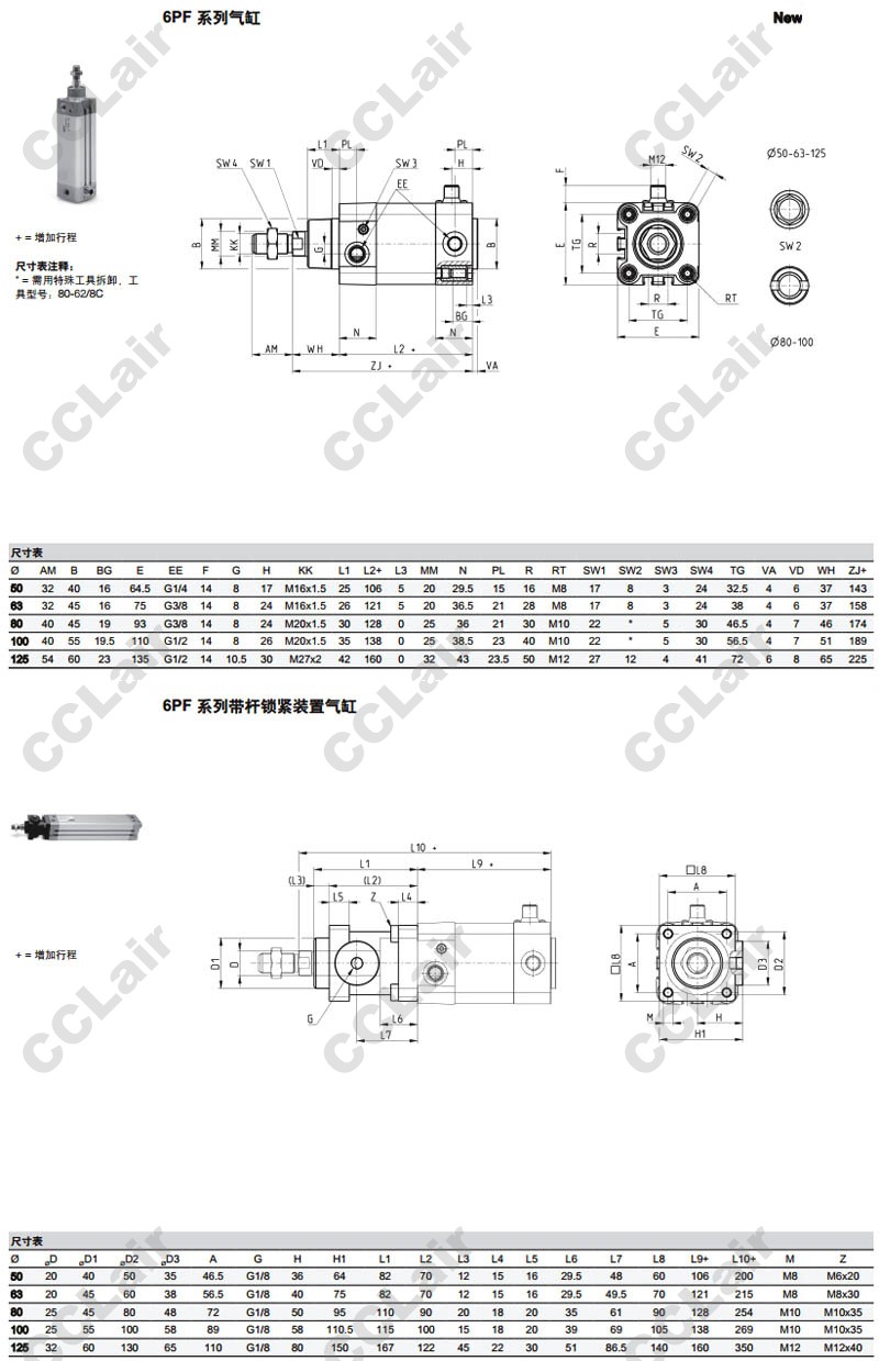6PF3P050A050,6PF3P063A0100,6PF3P080A0150,camozzi气缸
