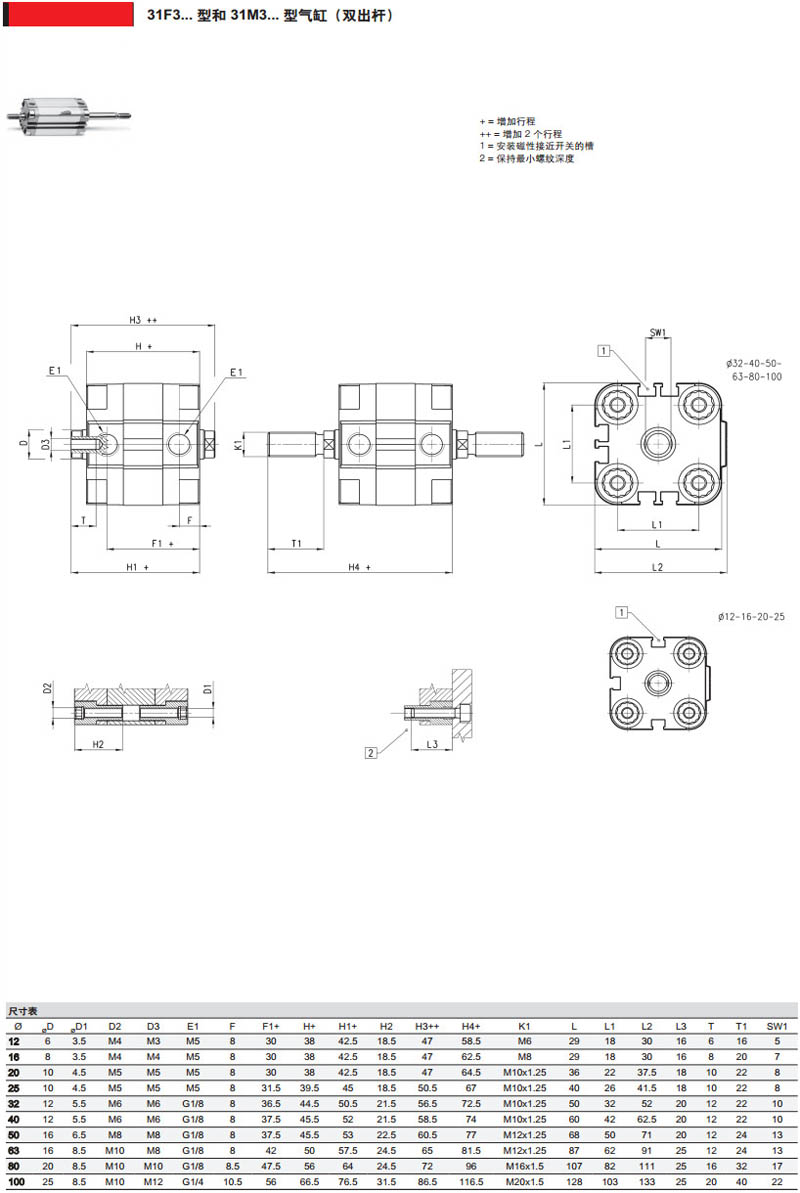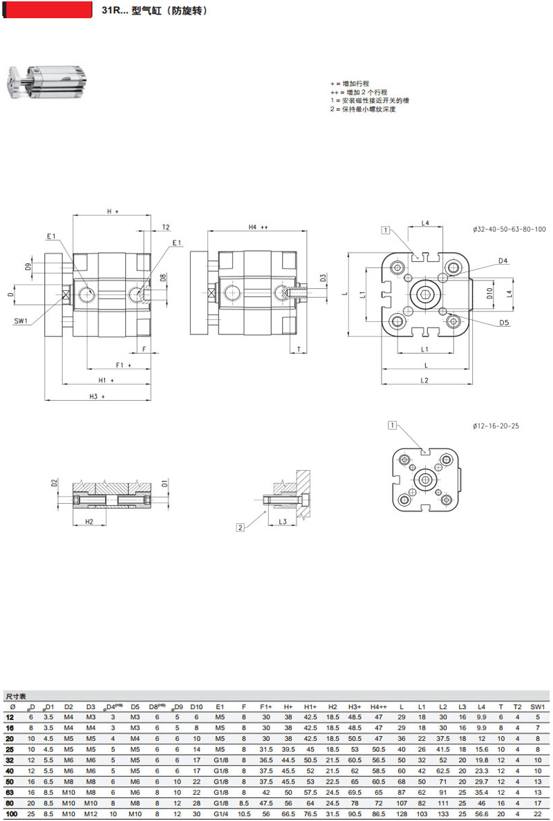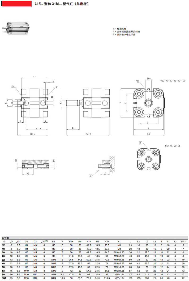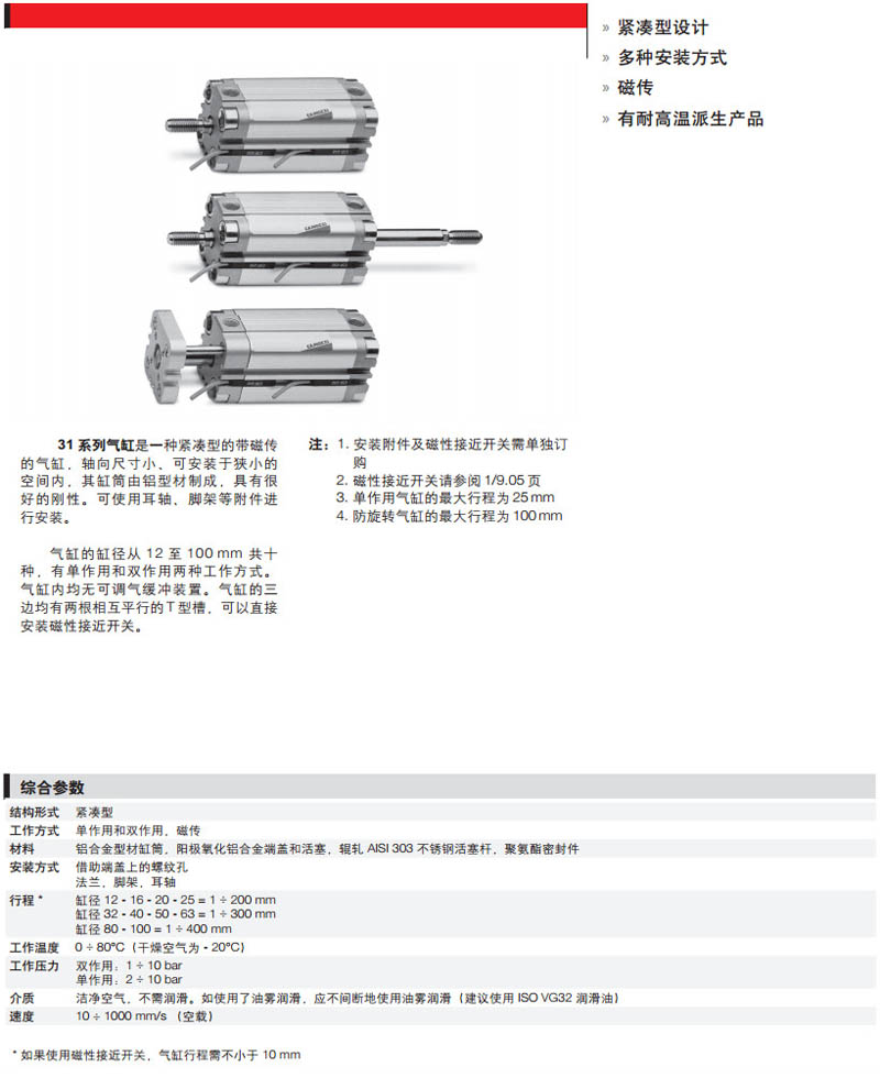 31M1A050A020,31F1A032A020,31R4A050A080,31M2A020A010,camozzi气缸