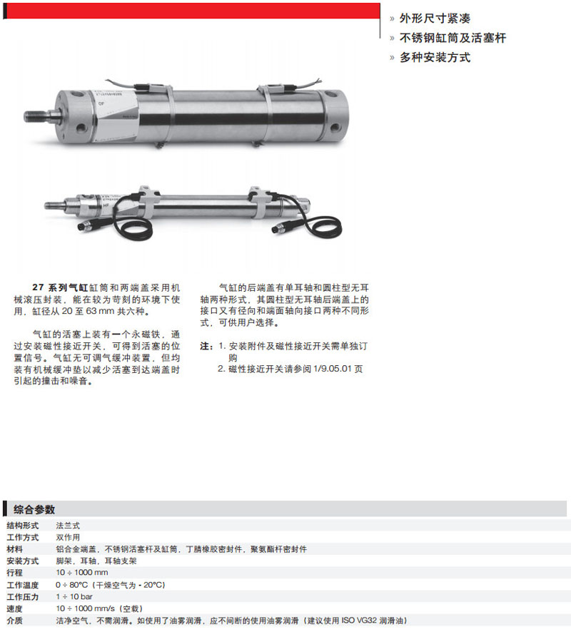 27M2A020A0010,27T2A020A040,27T2A040A050,27U2A040A080,27M2A032A025,camozzi气缸