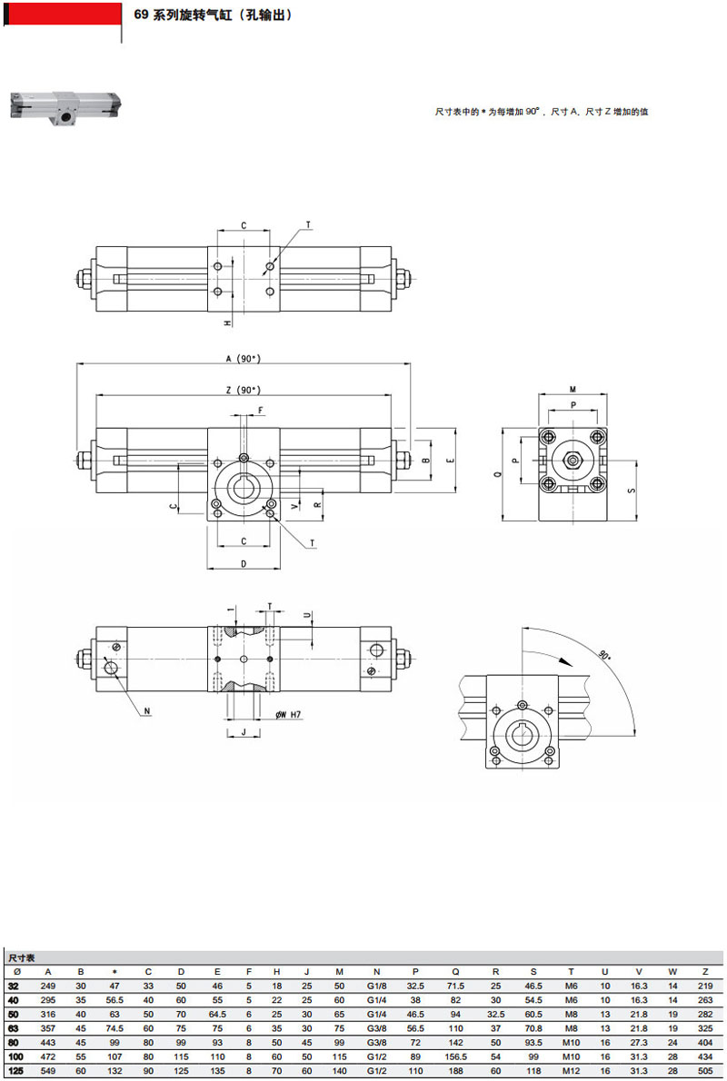 69-032/090-F,69-040/180-F,69-050/090-M,69-063/180-M,69-080/270-F,camozzi气缸
