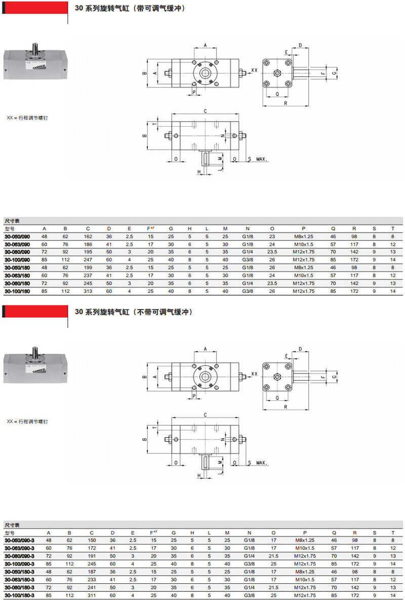 30-050/090-3,30-063/090-3,30-080/180-3,30-100/180-3camozzi气缸