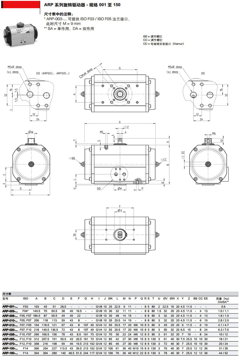 ARP-001-1AA-F0300,ARP-003-1CA-F0300,ARP-005-2A-F030camozzi气缸