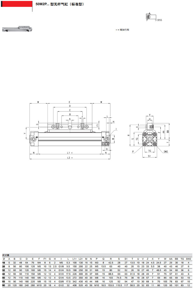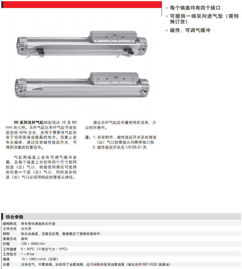 50M2P16A0500,50M2P25A0500,50M2U32A0500,50M2U40A0500,50M2P50A0500,camozzi气缸