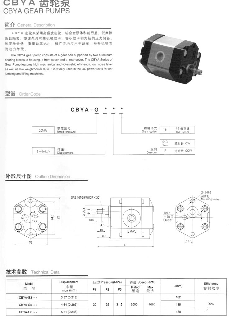 CBYA-G3F16,CBYA-G5F16,CBYA-G6F16,CBYA-G316,CBYA-G516,CBYA-G616,齿轮泵