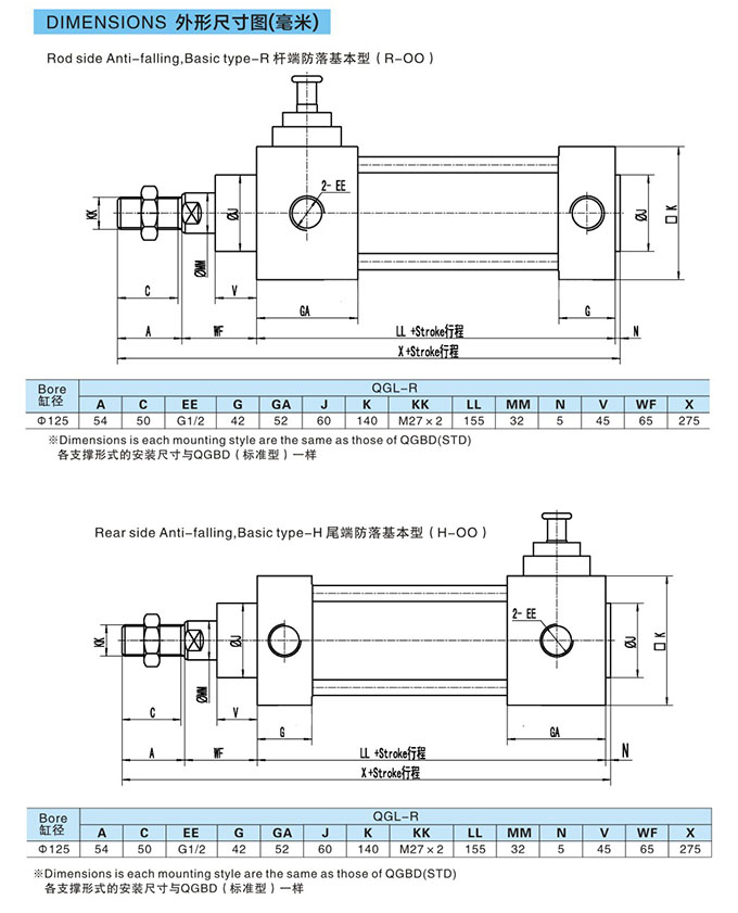 QGL-R,QGL-H,QGL-R-OO-40,QGL-H-OO-40,QGL-R-LB-40,QGL-H-FA-40,防落气缸