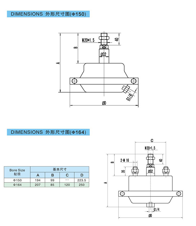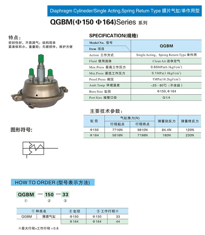QGBM-150-33,QGBM-164-44,QGBM-150-44,QGBM-164-33,膜片气缸