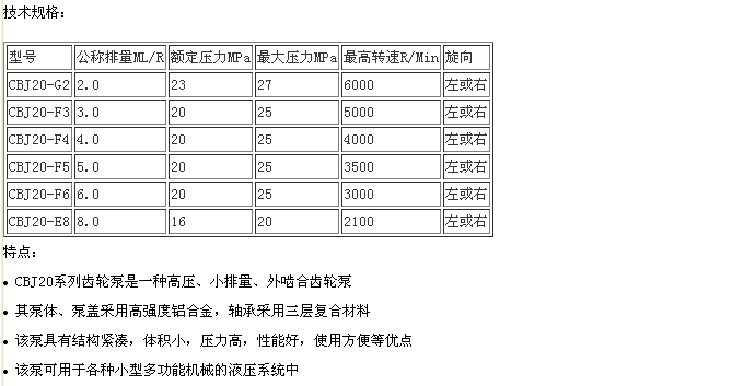CBJ20-G2,CBJ20-F3,CBJ20-F4,CBJ20-F5,CBJ20-F6,CBJ20-E8,齿轮泵