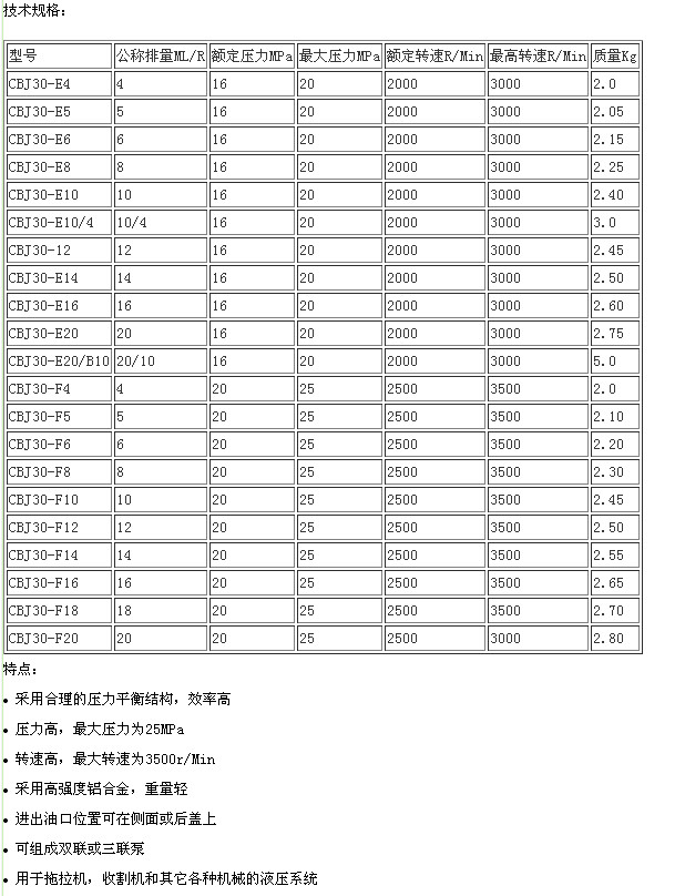 CBJ30-E4,CBJ30-E5,CBJ30-E6,CBJ30-F4,CBJ30-F5,CBJ30-F6,齿轮泵