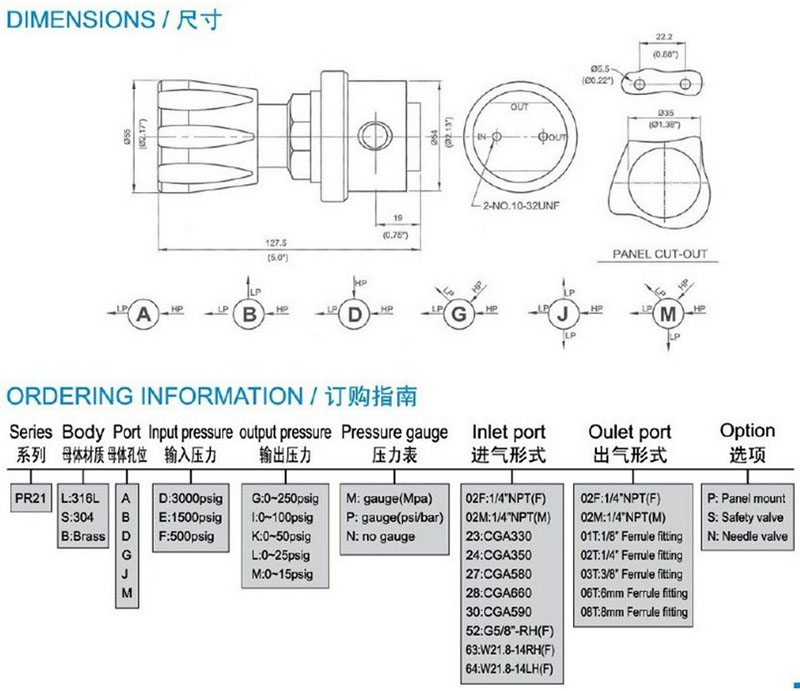 PR21LA-D-G-M,PR21BB-D-I-M,PR21SD-E-K-M,PR21BG-E-L-M,PR21BJ-F-M-M,减压阀