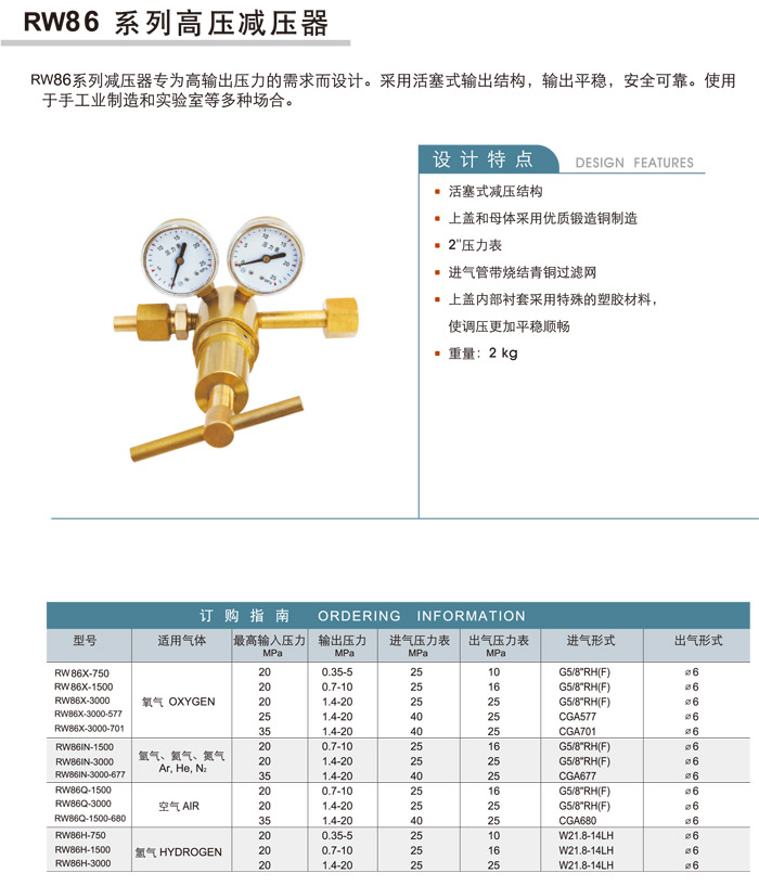 RW86X-750,RW86IN-1500,RW86Q-1500,RW86H-1500,RW86X-1500,RW86X-3000-577,RW86IN-3000-677,高压减压器