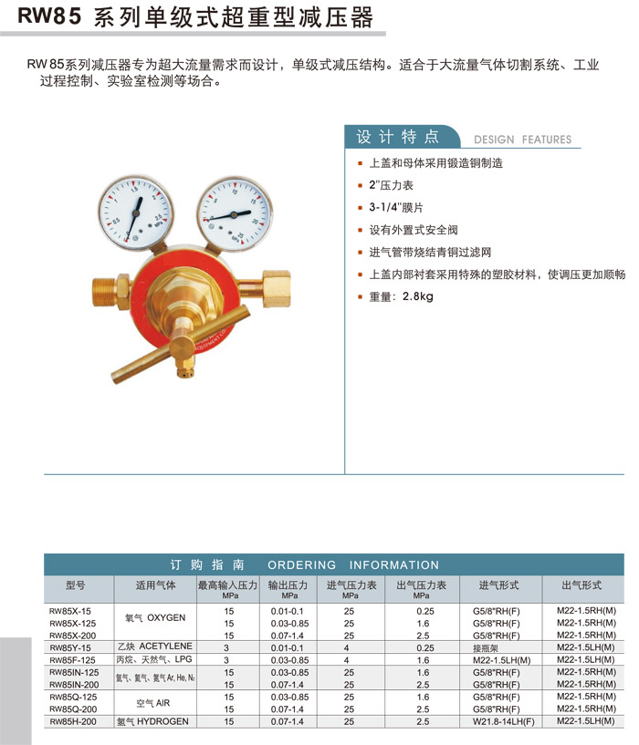 RW85X-15,RW85X-125,RW85X-200,RW85Y-15,RW85F-125,RW85IN-125,RW85Q-125,RW85Q-200,RW85H-200,单级式超重型减压器