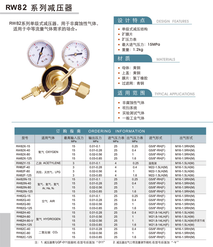 RW82X-15,RW82Y-15,RW82F-40,RW82IN-15,RW82Q-15,RW82H-40,RW82C-40,减压器