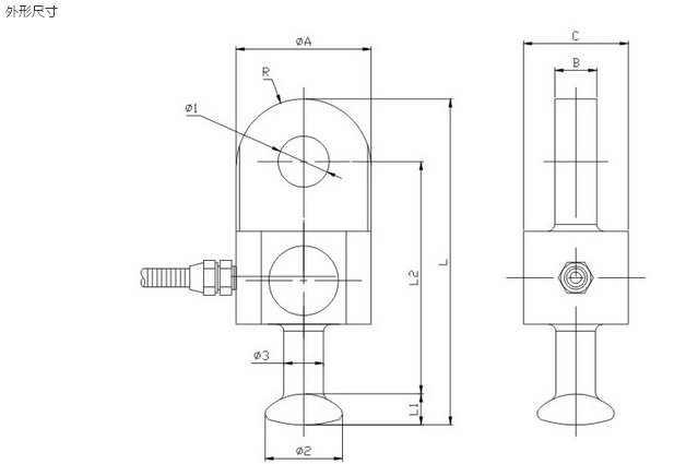 传感器采用柱式结构,测量精度高、抗偏载能力强;将传感器连接端做成球头挂环样式,取代传统球头挂环;安装在绝缘子串与衡量之间,测量导线的载荷力。