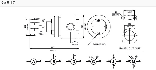● 安全测试压力:1.5倍的最大进气压力 ● 适用温度:-40℉~+165℉(-40℃~+74℃) ● 泄漏率:2x10-8 atm cc/sec He