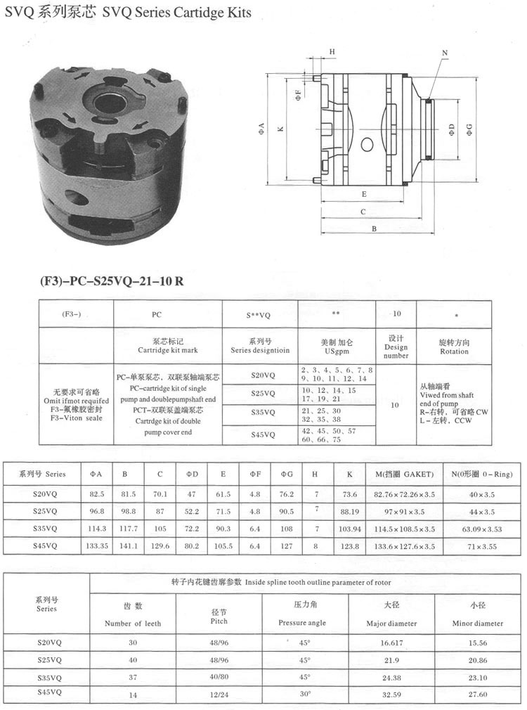 PC-S20VQ-2-10R,PC-S25VQ-12-10R,PC-S35VQ-30-10L,PC-S45VQ-57-10L,泵芯