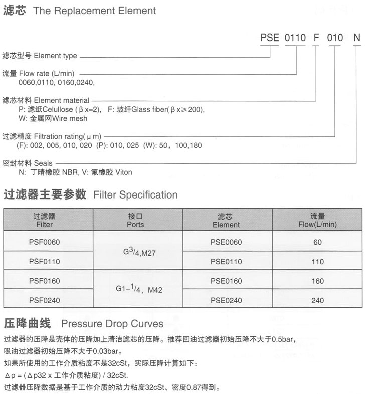 PSF0060,PSF0110,PSF0160,PSF0240,PSF0060F002NB12,PSF0240W040NM42,旋装型低压过滤器