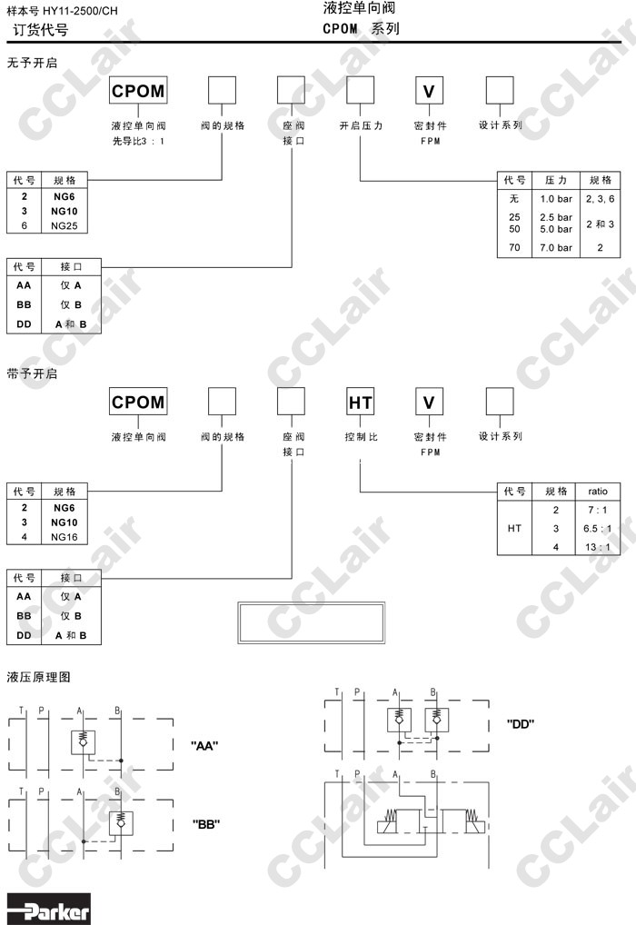 CPOM2AA,CPOM3AA,CPOM6AA,CPOM2BB,CPOM3BB,CPOM6BB,CPOM2DD,CPOM3DD,CPOM6DD,Parker液控单向阀