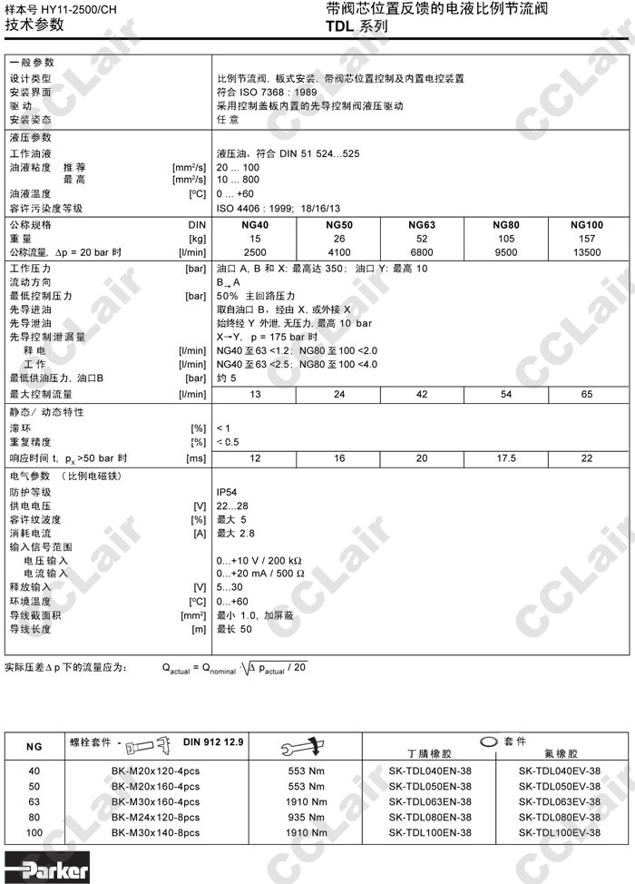 TDL040EH99B2NB0,TDL050EH99B2NB0,TDL063EH99B2NB0,TDL080EH99B2NB0,TDL100EH99B2NB0,Parker电液比例节流阀