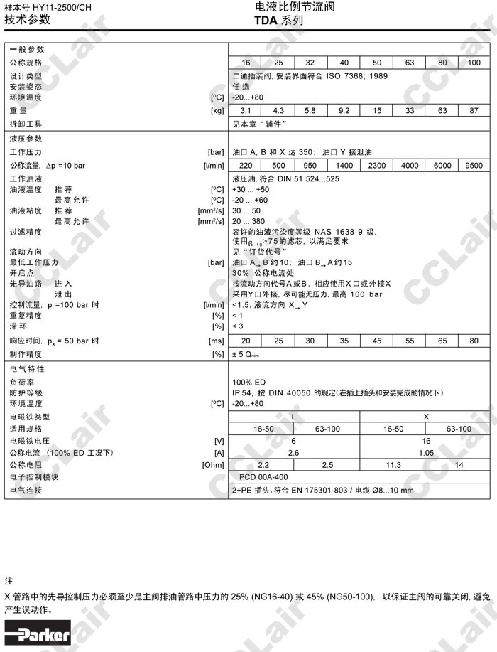 TDA016,TDA025,TDA032,TDA040,TDA050,TDA063,TDA080,TDA100,TDA016EW09A2NXW,Parker电液比例节流阀