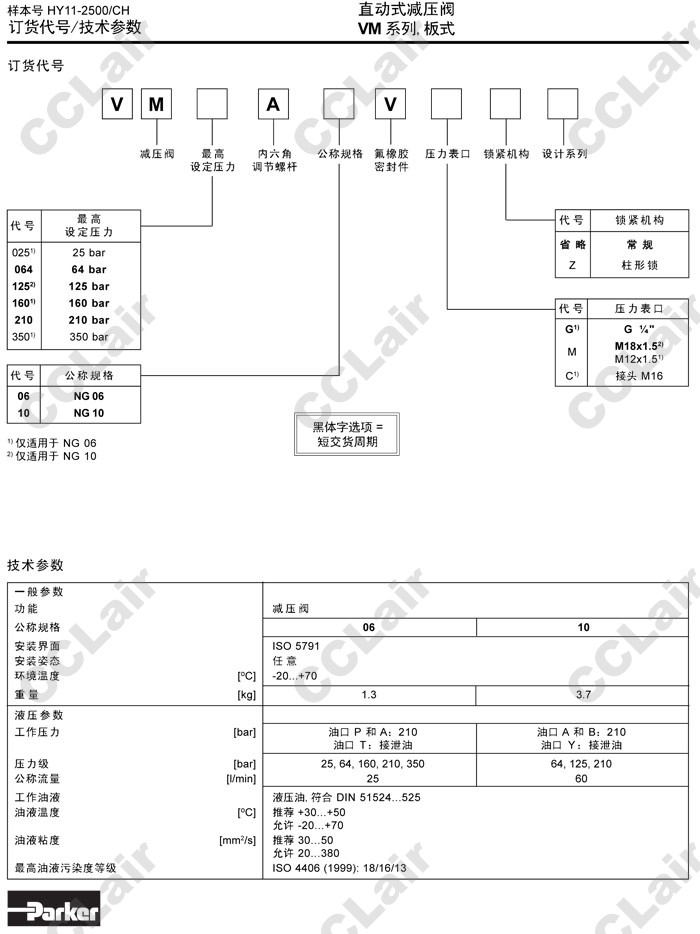 VM025A06VG,VM160A06VG,VM350A06VG,VM125A10VC,VM064A06VG,VM210A06VG,VM064A10VM,Parker直动式减压阀