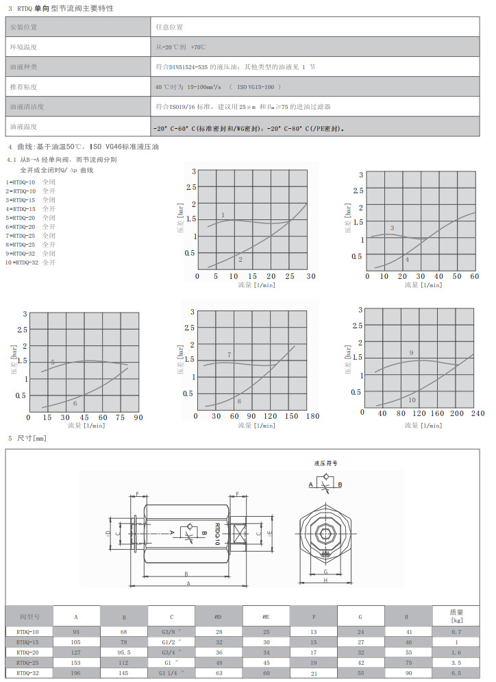 RTDQ-10-10,RTDQ-15-10,RTDQ-20-10,RTDQ-25-10,RTDQ-32-10,单向节流阀