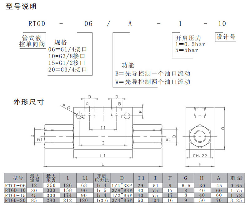 RTGD-06/A-1-10,RTGD-10/A-1-10,RTGD-15/A-1-10,RTGD-20/A-1-10,管式液控单向阀