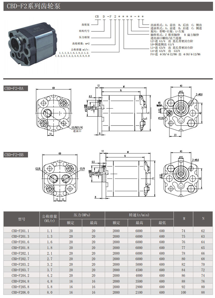 CBD-F201.1,CBD-F201.3,CBD-F201.6,CBD-F202.1,CBD-F202.7,CBD-F202.7F4ZBL,齿轮泵