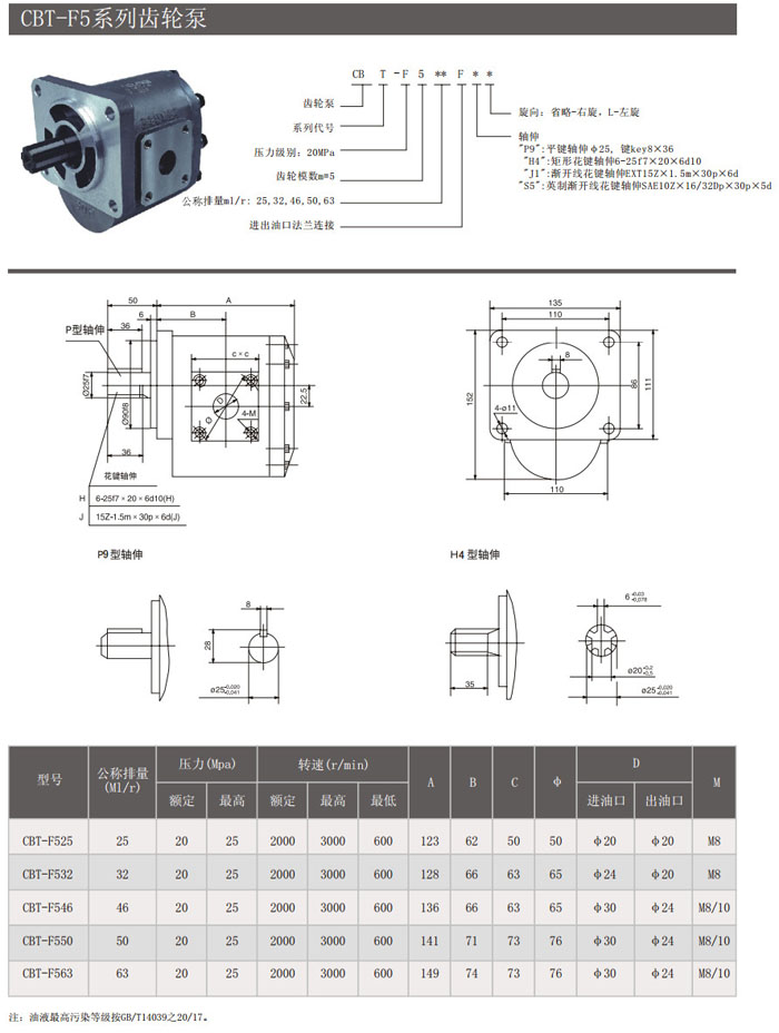 CBT-F525,CBT-F532,CBT-F546,CBT-F550,CBT-F563,CBT-F525P9,CBT-F532P9,齿轮泵