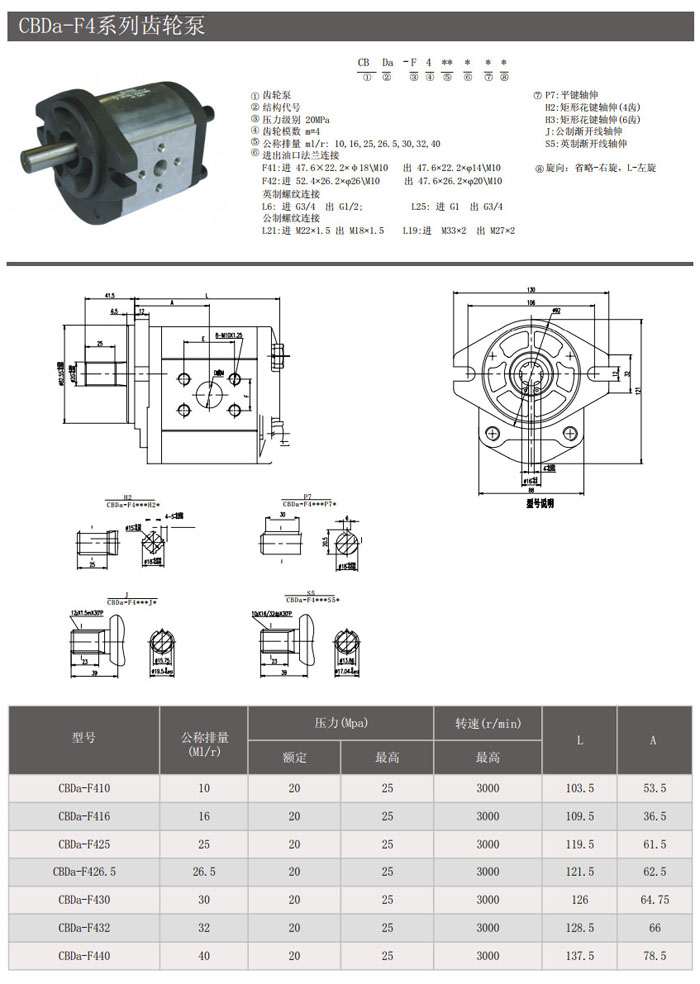 CBDa-F410,CBDa-F416,CBDa-F425,CBDa-F426.5,CBDa-F430,CBDa-F432,CBDa-F440,齿轮泵