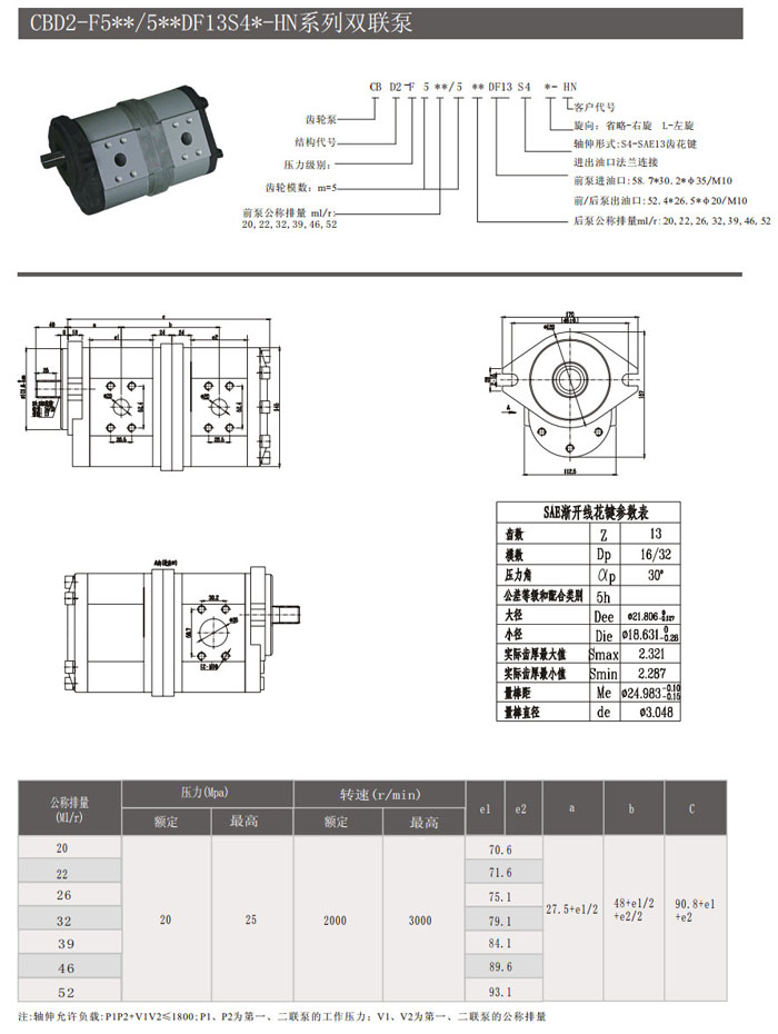CBD2-F520/520DF13S4-HN,CBD2-F520/522DF13S4-HN,CBD2-F520/526DF13S4-HN,CBD2-F520/532DF13S4-HN,双联泵