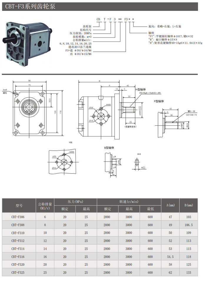 CBT-F306,CBT-F308,CBT-F310,CBT-F312,CBT-F314,CBT-F316,CBT-F320,CBT-F325,CBT-F306F3P7,齿轮泵