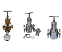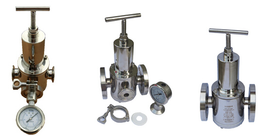 卫生级减压阀多用于食品,制药,乳品,洁净室,生物工程等高洁净领域。 阀门规格:DN15~DN50mm(1/2"~2") 接口方式:快装卡箍,活结螺纹,对焊焊接,法兰 阀体材质:不锈钢304,316L 阀体采用不锈钢304/316L材质锻造,阀门各个部件均由高精度数控设备加工,阀体内部采用精密抛光处理,保证了阀门的高洁净要求,外表面有多重处理方法:镜面,亚光,喷砂等,满足各种工况需求。适用介质:蒸汽,压缩空气,水等,其他介质需来电咨询定制。 阀门使用参数: 进口端最大压力1.0MPA(10公斤) 出口端调压范围:0.08~0.8MPA(0.8~8公斤); 最高工作温度:165°, 建议进出口压差2公斤以上 特点: *平衡式减压结构,提高输出压力稳定性。 *防松螺母可以控制调节螺杆的设定。 *温度范围:-15-165℃,重量:7KG,最大流量:15m3/h *零部件按HG20202要求清洗,阀体内外表面镜面抛光处理,满足GMP洁净要求,适合纯氧高洁净环境下使用。 *100%通过工厂测试。 材质: 阀体---------不锈钢 阀盖---------不锈钢 密封元件---------FKM,PTFE 弹簧---------不锈钢 波纹管---------不锈钢 法兰及法兰接头----------不锈钢 紧固件-------不锈钢 订购信息
