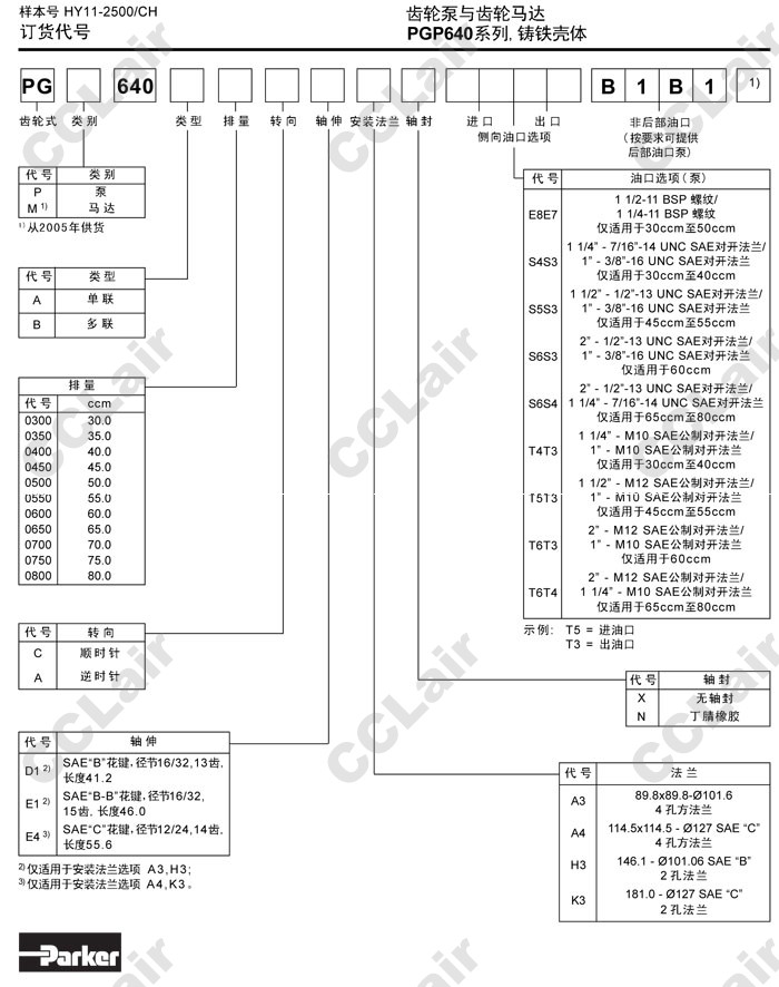 PGP640A,PGP640B,PGP640A0300CD1A3,PGP640B0300CD1A3,PGP640A0350AD1A3,Parker齿轮泵