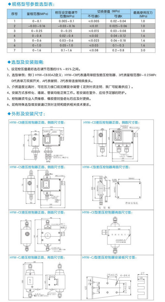 HYW-C11D1M,HYW-CF51D1M,HYW-CEx33D1M,HYW-C42D1M,差压控制器