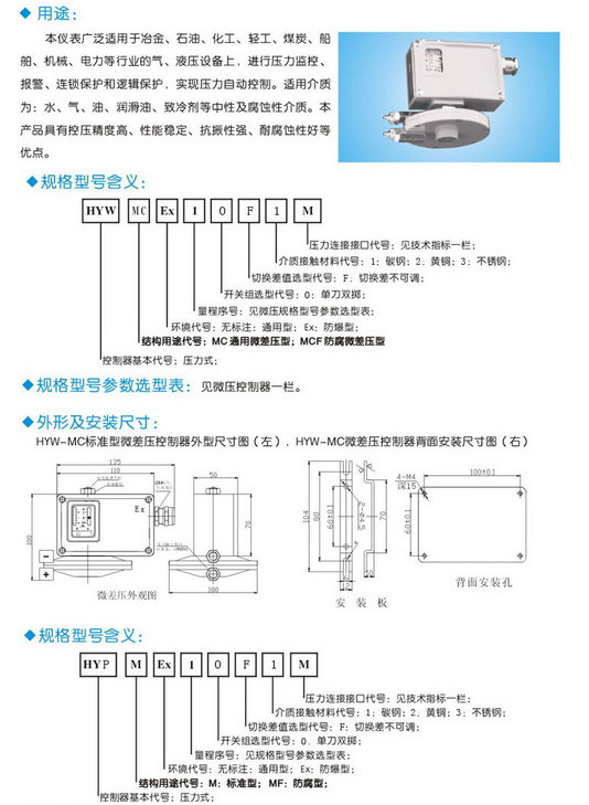 HYW-MC10F1M,HYW-MCEx30F1M,HYP-M10F1M,HYP-M20F1M,微差压控制器