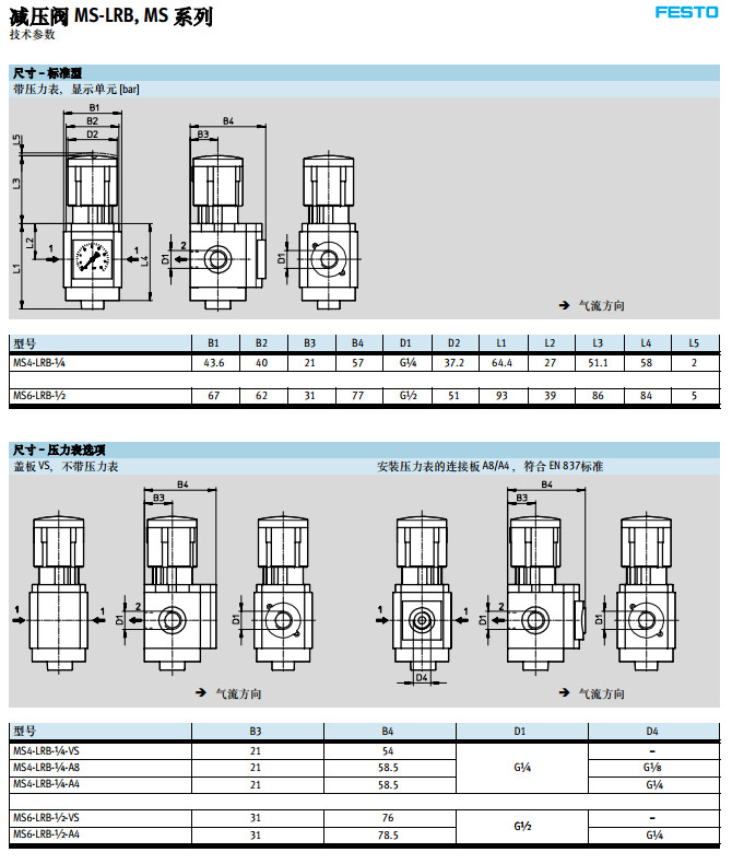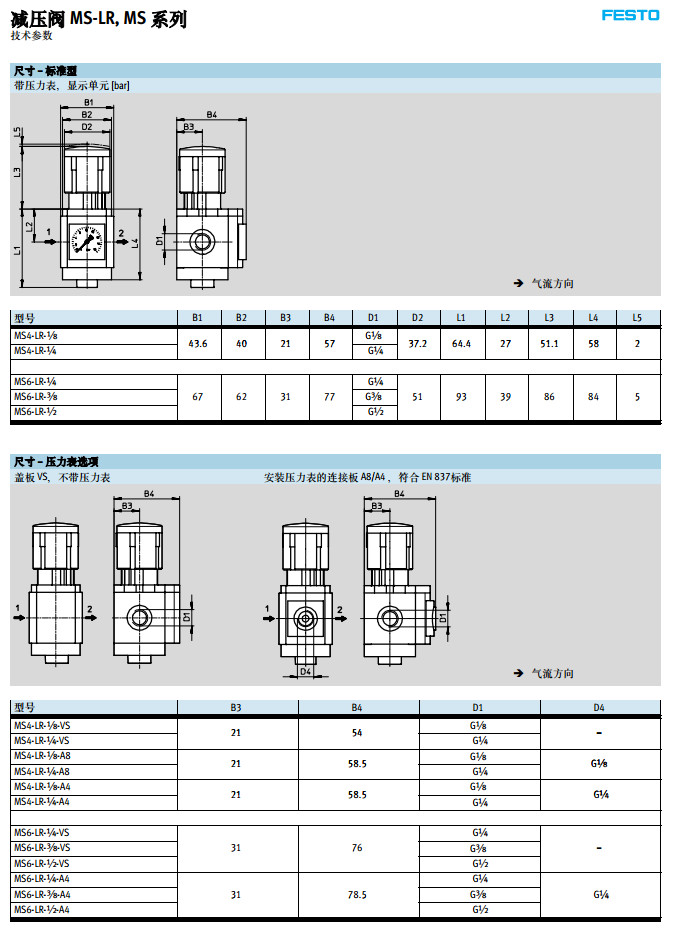 MS4-LR-1/8,MS4-LRB-3/8,MS6-LR-3/8,MS6-LRB-1/8,festo减压阀