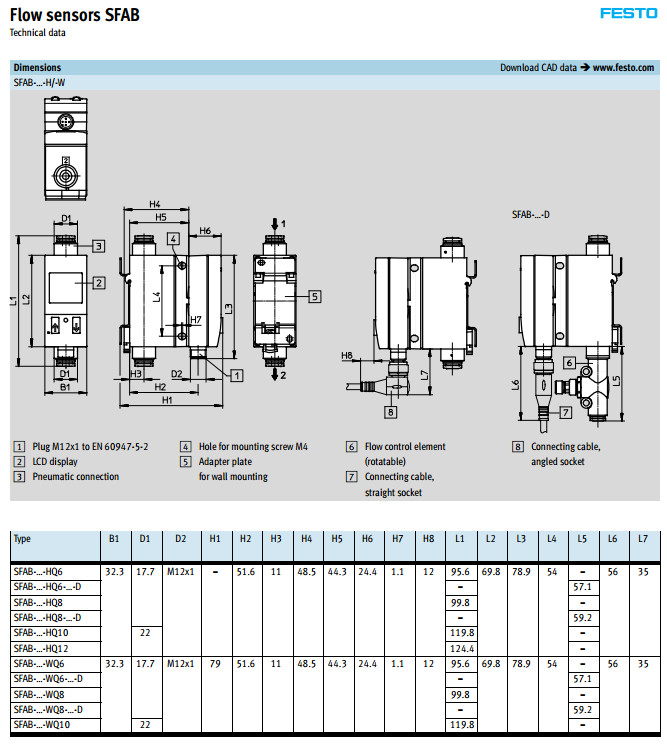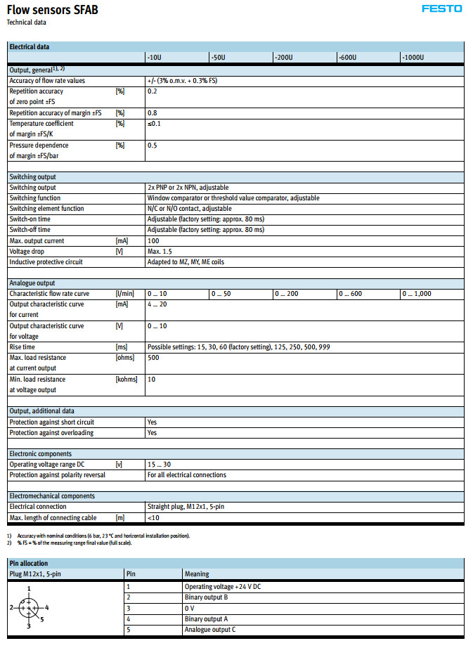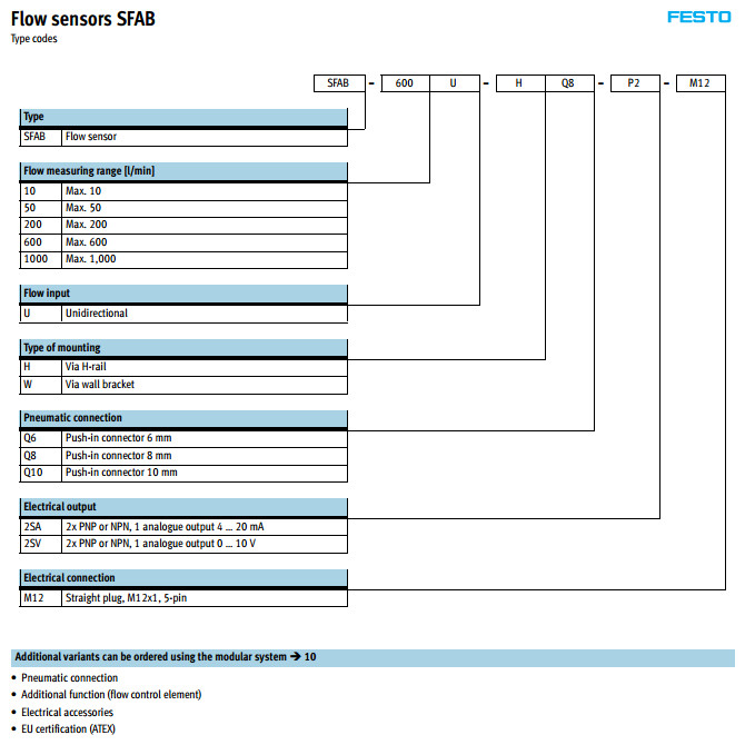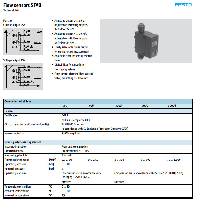 SFAB-10U,SFAB-50U,SFAB-200U,SFAB-600U,SFAB-1000U,festo流量传感器
