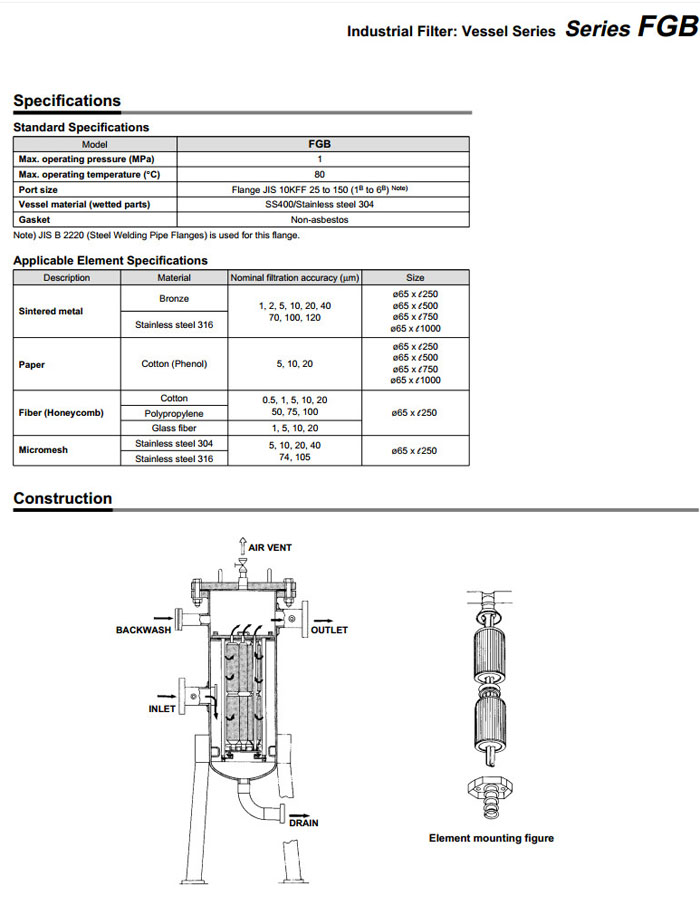 FGBS04,FGBS07,FGBS09,FGBS18,FGBS22,FGBS29,FGBS34,FGBS37,FGBS53,FGBS83,FGBS83D-60,SMC工业用过滤器