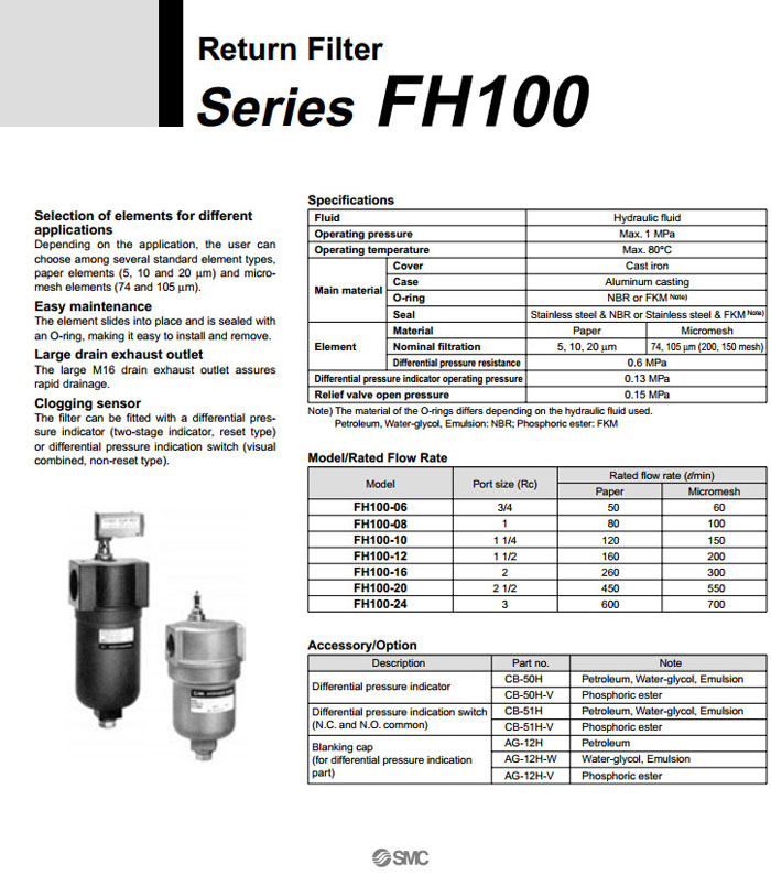 FH100-06,FH100-08,FH100-10,FH100-12,FH100-16,FH100-20,FH100-24,SMC回流过滤器