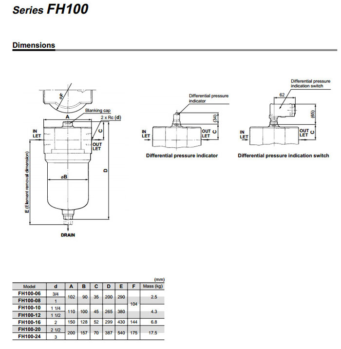 FH100-24-501-P005,FH100-24-501-P010,FH100-24-501-P020,FH100-24-501-P074,FH100-24-501-P105,SMC回流过滤器