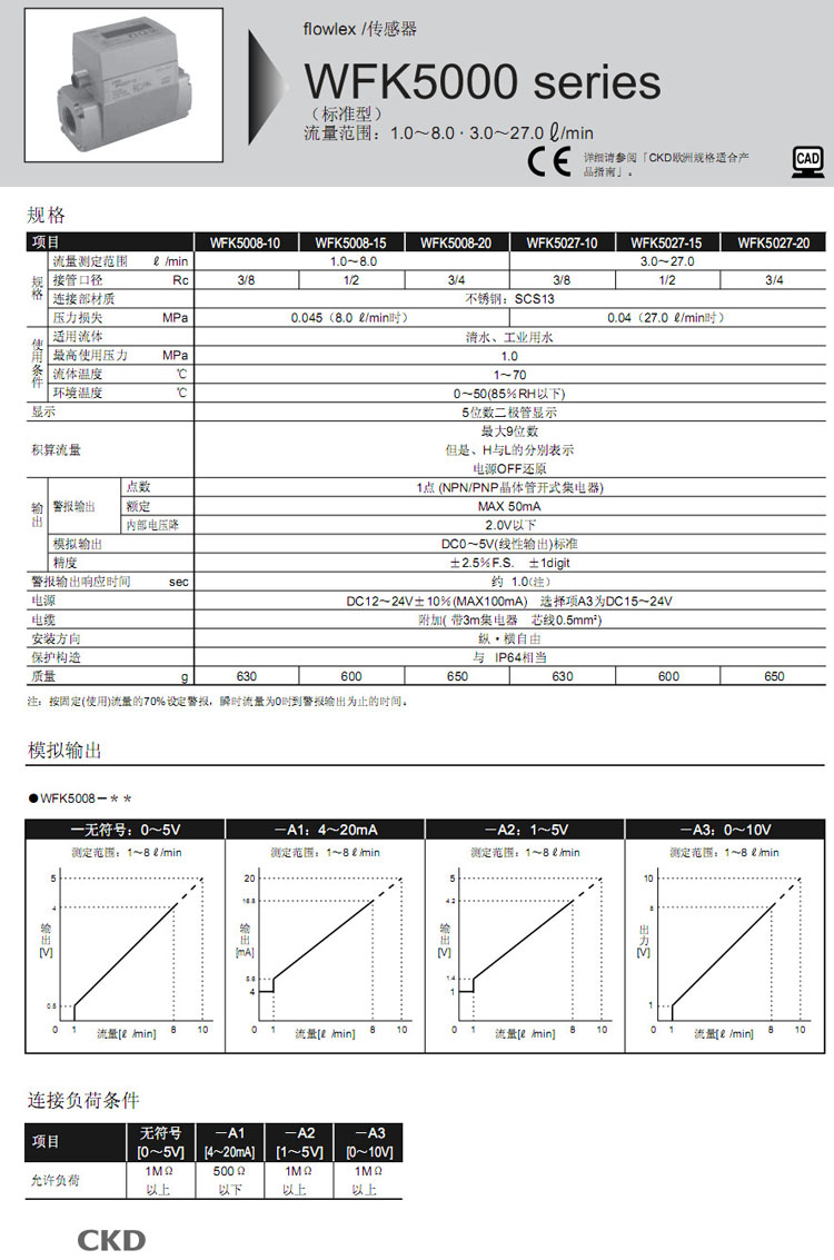 WFK5008-10,WFK5008-15,WFK5008-20,WFK5027-10,WFK5027-15,WFK5027-20,CKD传感器