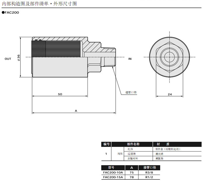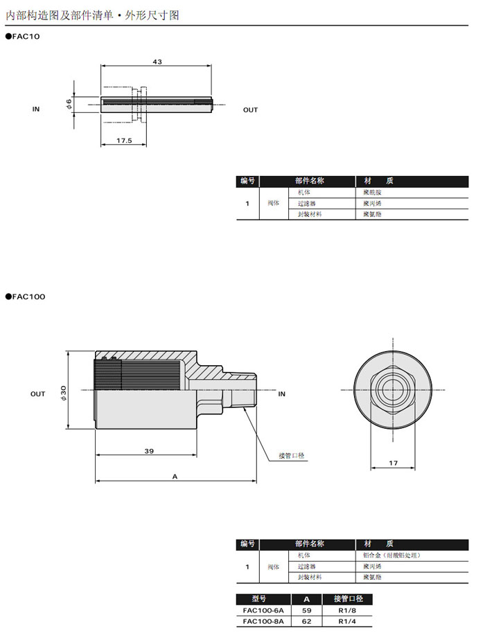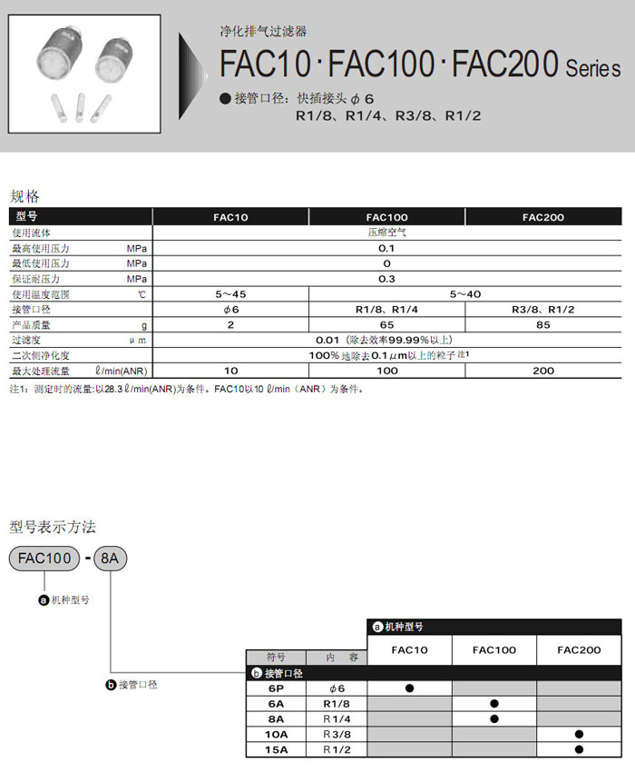 FAC10-6P,FAC100-6A,FAC100-8A,FAC200-10A,FAC200-15A,CKD净化排气过滤器