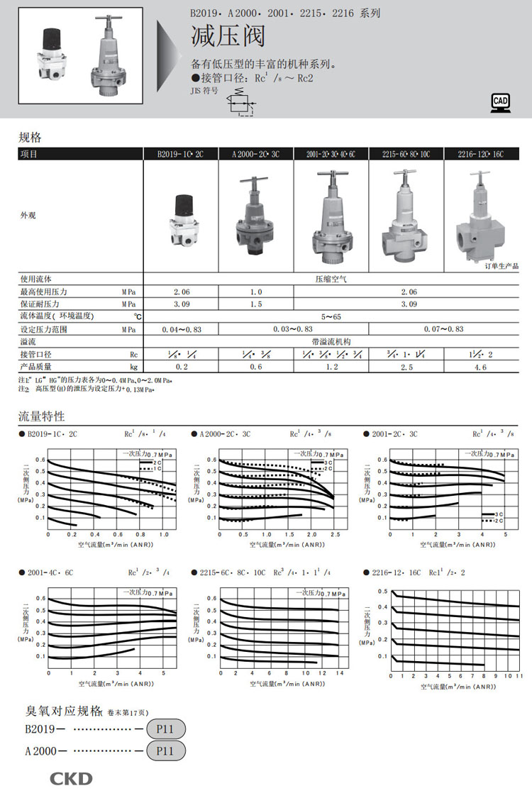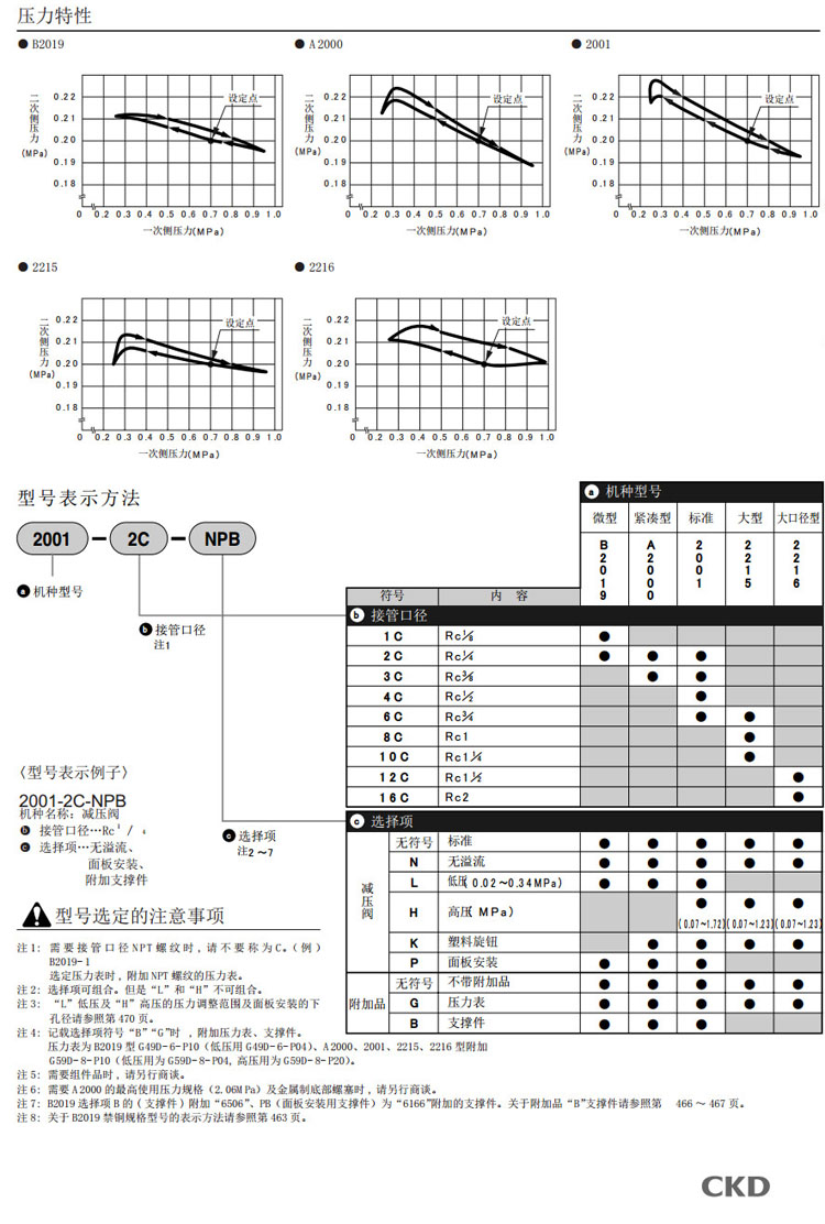 B2019-1C,A2000-2C,2001-2C,2215-6C,2215-8C,2215-10C,2216-12C,CKD减压阀