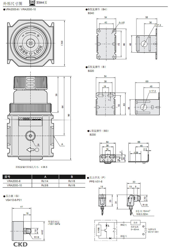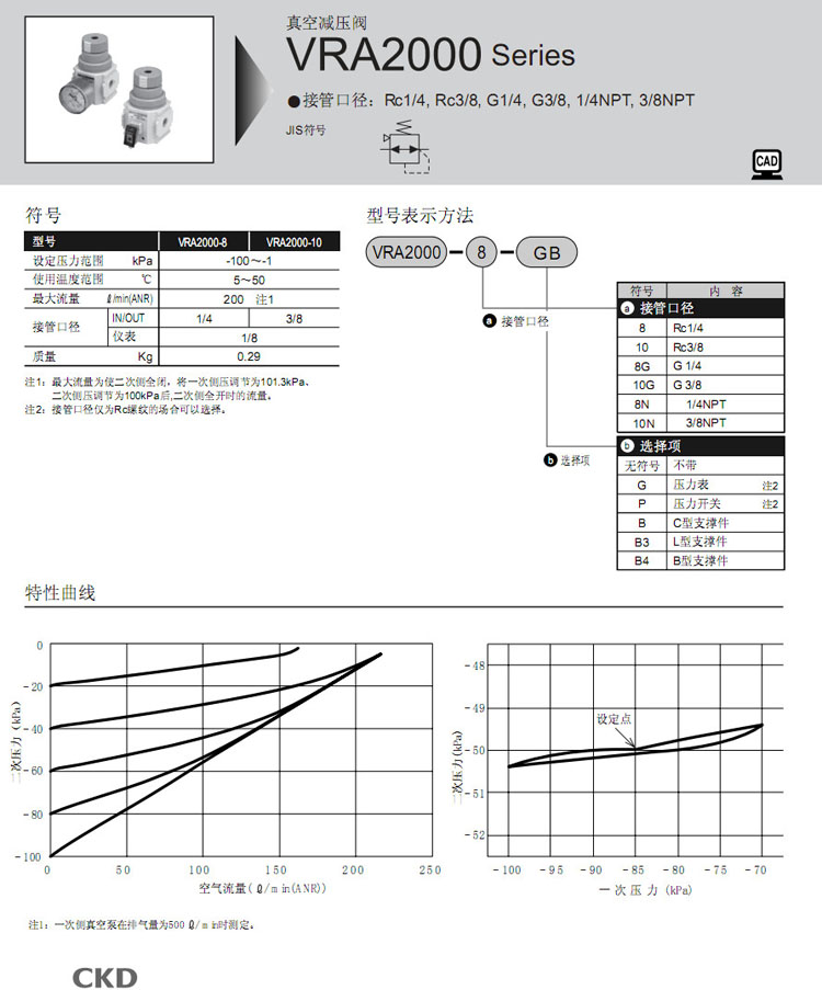 VRA2000-8,VRA2000-10,VRA2000-8G,VRA2000-10G,VRA2000-8N,VRA2000-10N,CKD真空减压阀