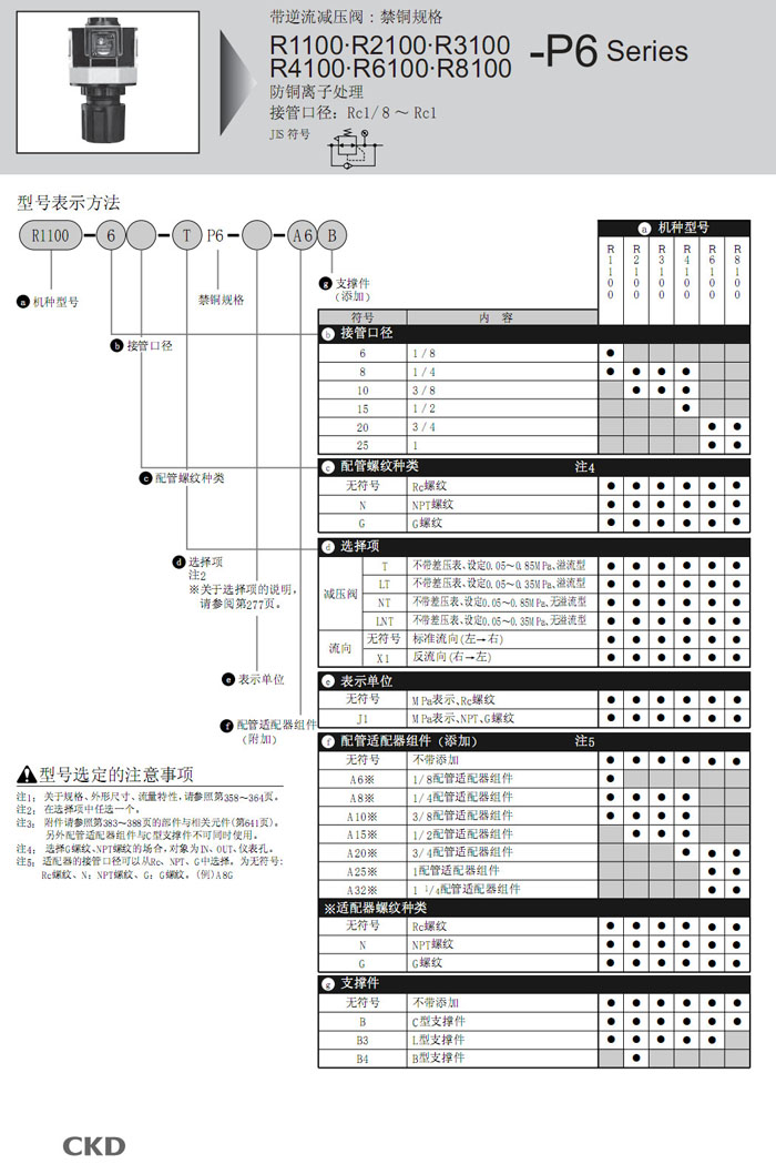 R1100-6,R1100-8,R3100-8,R3100-10,R4100-8,R4100-10,R4100-15,R6100-20,R8100-25,R6100-25,R8000-20,CKD减压