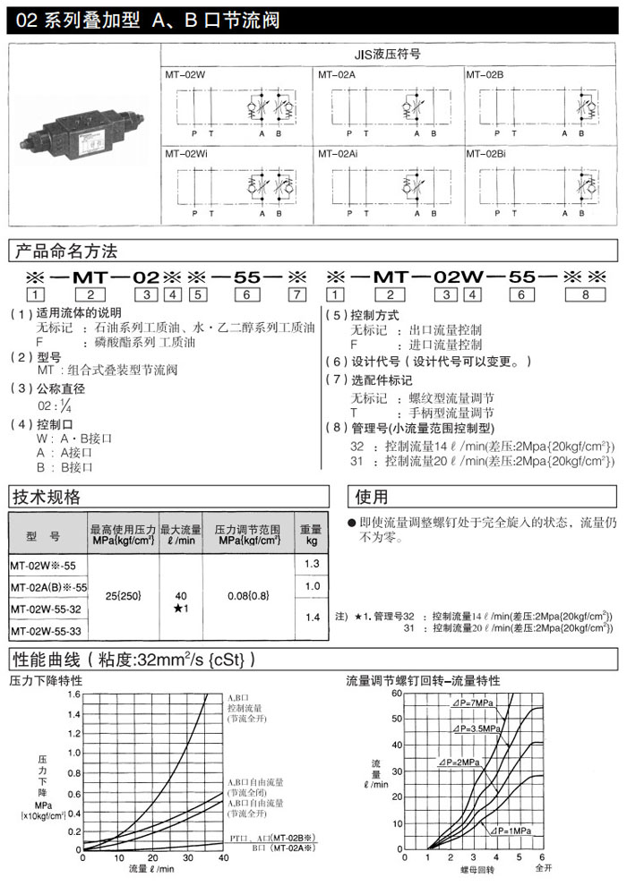 MT-02W,MT-02A,MT-02B,MT-02W-55,MT-02W-55-32,MT-02W-55-33,MT-02A-55,DAIKIN叠加型节流阀