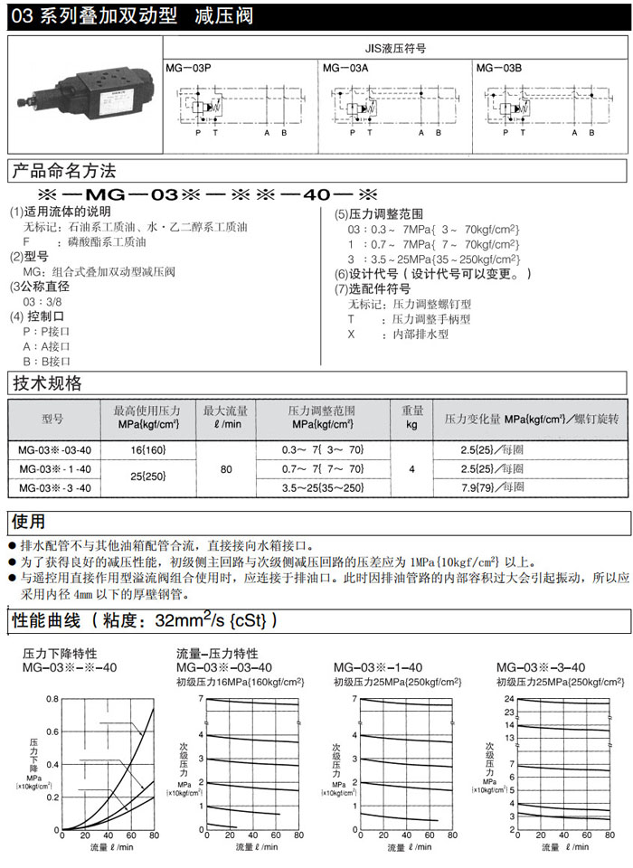 MG-03P,MG-03A,MG-03B,MG-03P-03-40,MG-03A-03-40,MG-03B-03-40,DAIKIN叠加双动型减压阀