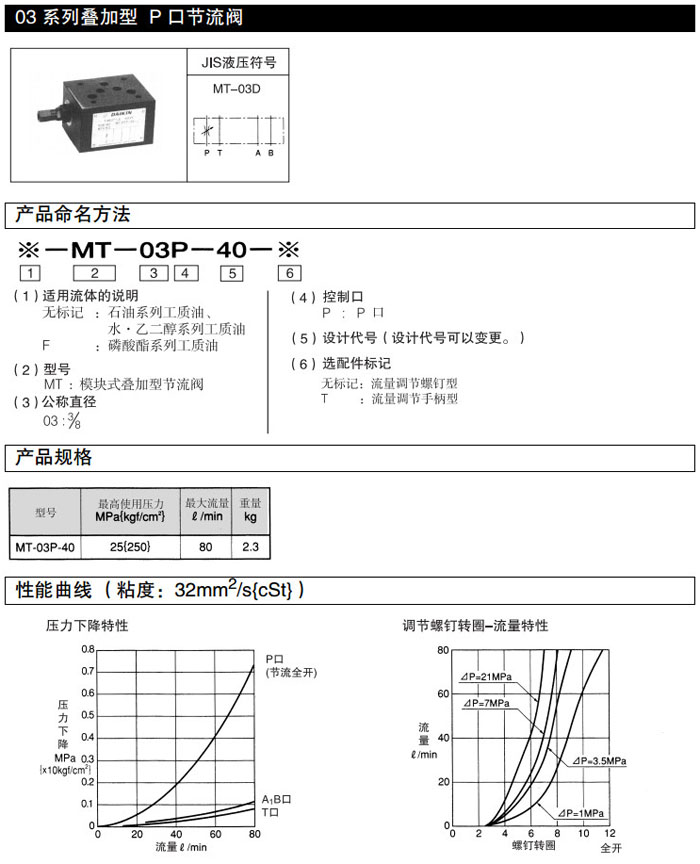 MT-03P-40,DAIKIN叠加型节流阀